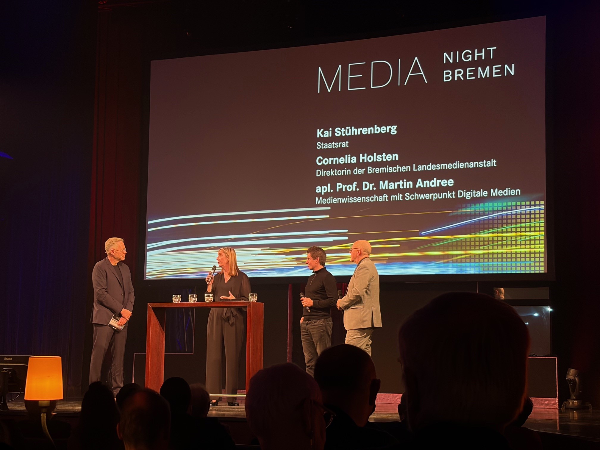 Im Anschluss gab es eine kurze, aber sehr intensive Debatte mit Cornelia Holsten, Direktorin der Bremischen Landesmedienanstalt, und Kai Stührenberg, Staatsrat. Drei Perspektiven aus ganz unterschiedlichen Bereichen, die einen Austausch möglich gemacht haben, der wirklich zum Nachdenken angeregt hat.